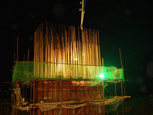 六安淠望路大橋至2月份開工以來,項目部邊施工邊籌備,克服前期陰雨天氣的不利因素,創造施工條件,確保主墩連續施工,引橋全面開工。在全體員工的努力下,大家不分晝夜,爭分奪秒搶時間,特別是主墩承臺施工,連續3晝夜施工不間斷,使承臺較原計劃提前6天完成,為主墩出水爭取了時間。目前全橋樁基已全部完成,引橋正在進行立柱和系梁施工,同步準備箱梁現澆的準備工作,主橋墩身有序進行。
