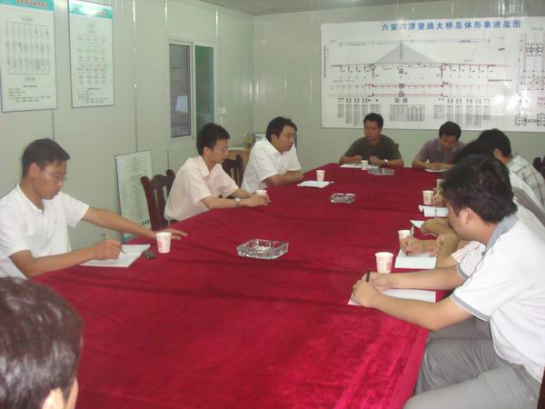 針對北岸引橋箱梁砼澆筑后,對成型構(gòu)件出現(xiàn)的問題,由全體技術(shù)人員先找原因討論解決辦法,隨后,崔總對所提出問題逐一進(jìn)行了原因分析,提出了解決的辦法。大家感到這種有針對性地培訓(xùn),接受的快,收效很大。最后,項目經(jīng)理江仲明要求在當(dāng)前工程沖刺關(guān)鍵時刻,所有技術(shù)人員要切實增強(qiáng)質(zhì)量意識,強(qiáng)化質(zhì)量工作責(zé)任,加強(qiáng)質(zhì)量考核工作,并強(qiáng)調(diào)各部門、各作業(yè)隊要對檢查出的質(zhì)量問題嚴(yán)肅處理,認(rèn)真落實整改。